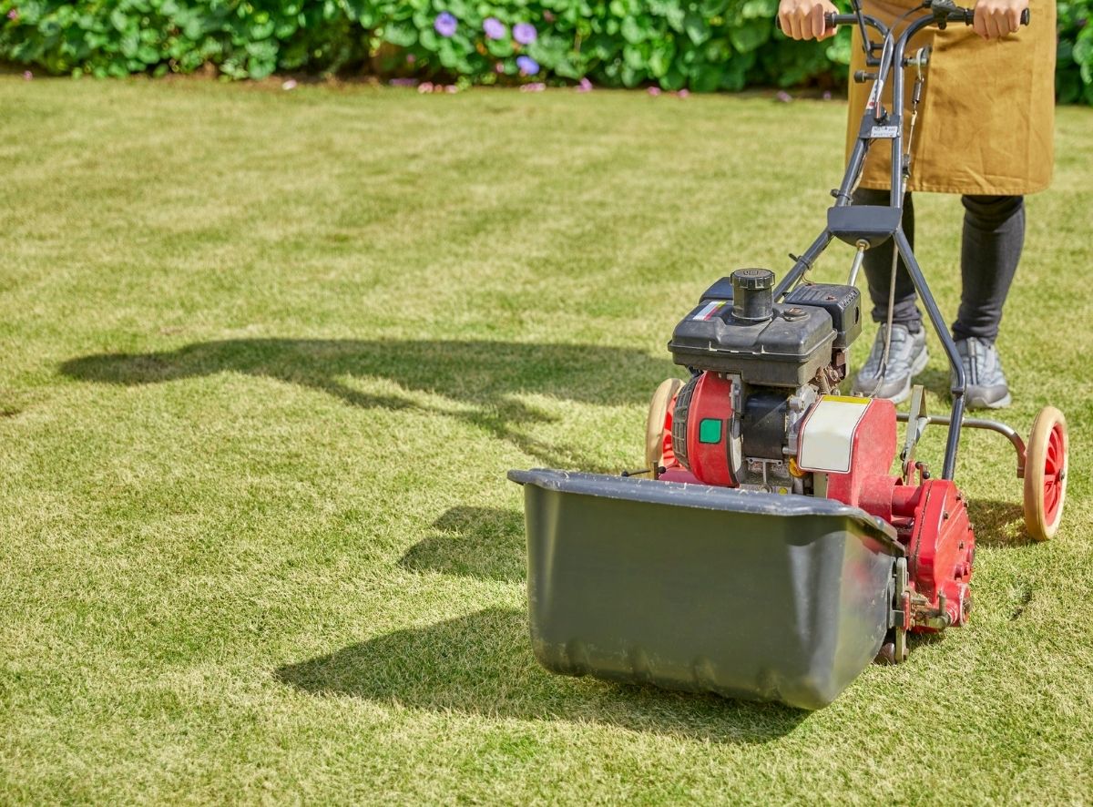 - Overseeding to fill bare spots and strengthen turf